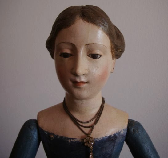 Algumas destas imagens, esquecida ou desconhecida a sua antiguidade e importância, estão expostas em altares de pequenas capelas e igrejas, vestidas por orgulhosas zeladoras, brilhando nos seus trajes de cetim e galões dourados. É o caso de duas peças que encontrei, uma na Igreja de Vila de Ala, aldeia do concelho de Mogadouro, e uma outra, em Miranda do Douro. Curiosa, levantei um pouco a orla das suas saias. Eram mesmo santas de roca.