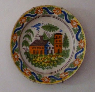 Face à descrição exaustiva de que foram objecto as peças análogas que vi, lindas e muitíssimo bem caracterizadas nos blogs do Luís, da Maria Andrade e da Maria Paula, creio que não há muito mais a dizer. Talvez, como indicam as várias interrogações apostas no título deste post, esta se possa aproximar do fabrico de Miragaia, pois apresenta as flores que são um dos elementos marcantes da sua produção. Por comparação com as outras peças registadas, a base é muito semelhante às mostradas, diferindo na cercadura do prato e na decoração central.